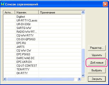 3. Появится окно Список соревнований (Рис.2) Выбрать и нажать Доб.новые