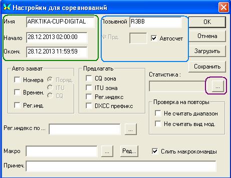 впишите дату и время начала соревнований , а в поле Оконч. дату и время окончания соревнований. В поле Позывной