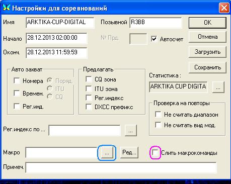 6. Снова появится окно Настройки для соревнований (Рис. 5) . В поле Слить макрокоманды рекомендуется снять галочку , лучше для теста иметь свои макро. Если макро уже были созданы , то подключить их , нажав кнопочку с тремя точками в поле Макро и указать путь к соответствующему Макро (Рис. 6)