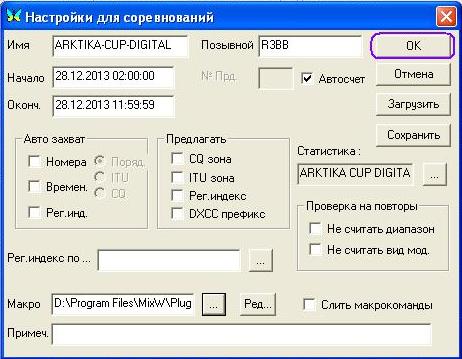 Настройка MiXW для работы в ARKTIKA-CUP-DIGITAL Contest