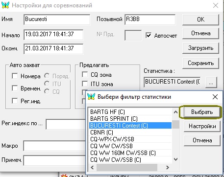 В появившемся окне (Рис.4) выберите BUCURESTI Contest и нажмите Выбрать .