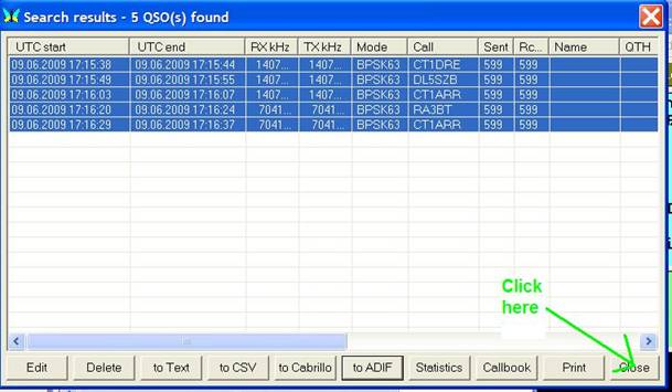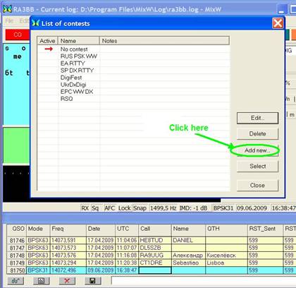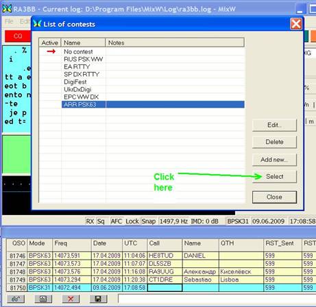 Select CDX TEST PSK31 and press button Select
