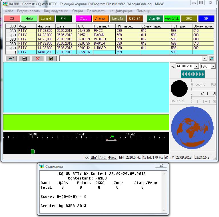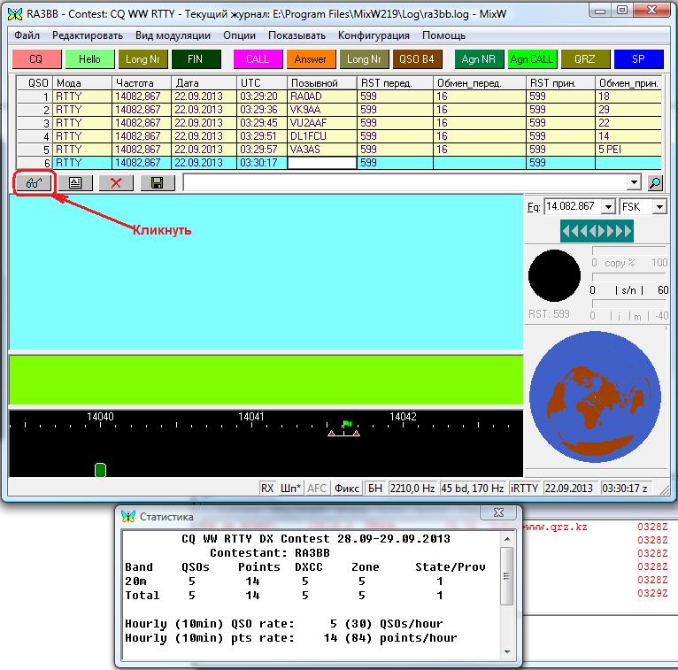 активирования теста - мышкой кликнуть на CQ-WW-RTTY