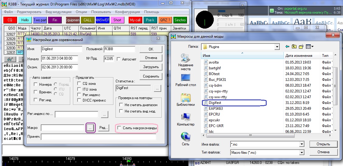 8. Снова появится окно Настройки для соревнований Рис.6. В поле Слить макрокоманды рекомендуется снять галочку , лучше для теста иметь свои макро.Если макро уже были созданы , то подключить их , нажав кнопочку с тремя точками в поле Макро и указать путь к соответствующему Макро .
