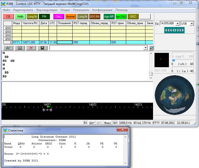 активирования теста - мышкой кликнуть на LDC-RTTY нажать Выбрать