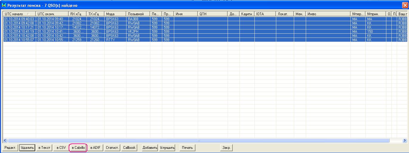 Выделить все проведенные связи и нажать кнопку Cabrillo. Появится форма формирования отчета (Рис. 12)