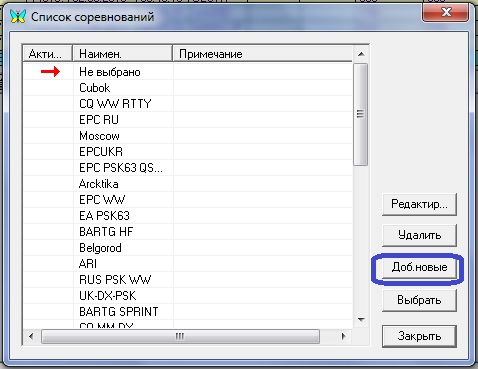 3. Появится окно Список соревнований (Рис.2) Выбрать и нажать Доб.новые