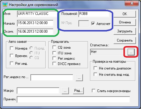 впишите дату и время начала соревнований , а в поле Оконч. дату и время окончания соревнований. В поле Позывной